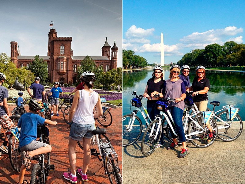 Outro jeito de pedalar e turistar é fazer isso com um passeio guiado de bike. Existem várias empresas que oferecem este serviço em DC, uma delas é a Bike and Roll (que ainda oferece tours de segway – veículo elétrico de duas rodas – para quem não tem pique para o pedal). São várias opções de passeios, mas um dos mais procurados entre os turistas é o que passa pelos monumentos e custa 40 dólares para adultos e 30 dólares para crianças. Contando partes importantes da história dos Estados Unidos, é muito interessante saber detalhes e curiosidades sobre cada um dos monumentos com ajuda de um guia local especializado no assunto. Com toda certeza esta possibilidade torna o passeio de bike ainda mais divertido. Mas é importante deixar claro duas desvantagens de escolher este tipo de tour. A primeira delas é que, como há apenas três horas para conhecer todos os lugares, falta tempo para observar e fotografar com tranquilidade cada um deles. Outro ponto negativo fica por conta da barreira do idioma para quem não fala inglês, pois não há guias que falam português.