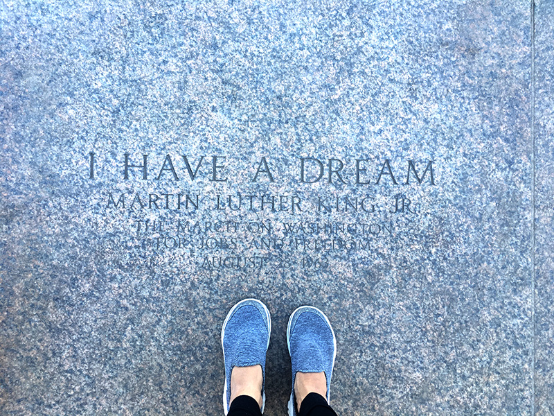 Ainda no memorial em homenagem ao ex-presidente, é possível ver o exato local demarcado no chão onde o ativista Martin Luther King fez seu famoso discurso “Eu tenho um sonho” em 28 de agosto de 1963. O discurso, que foi assistido por mais de 200 mil pessoas, foi decisivo na história do Movimento Americano pelos Direitos Civis.