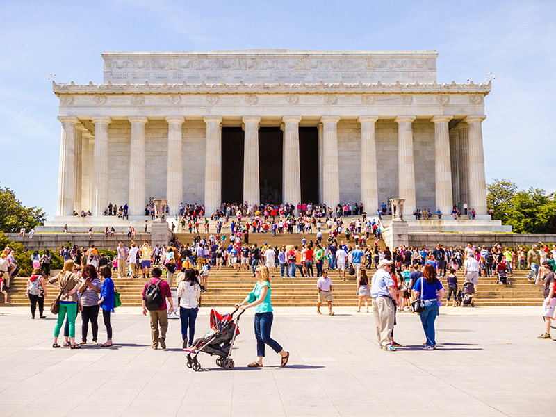 Com formato de templo grego, o monumento abriga uma grande estátua de mármore de Abraham Lincoln que mede quase seis metros. Até hoje ele é considerado um dos presidentes mais populares dos EUA, principalmente por seu papel histórico no processo de abolição da escravidão em 1865.