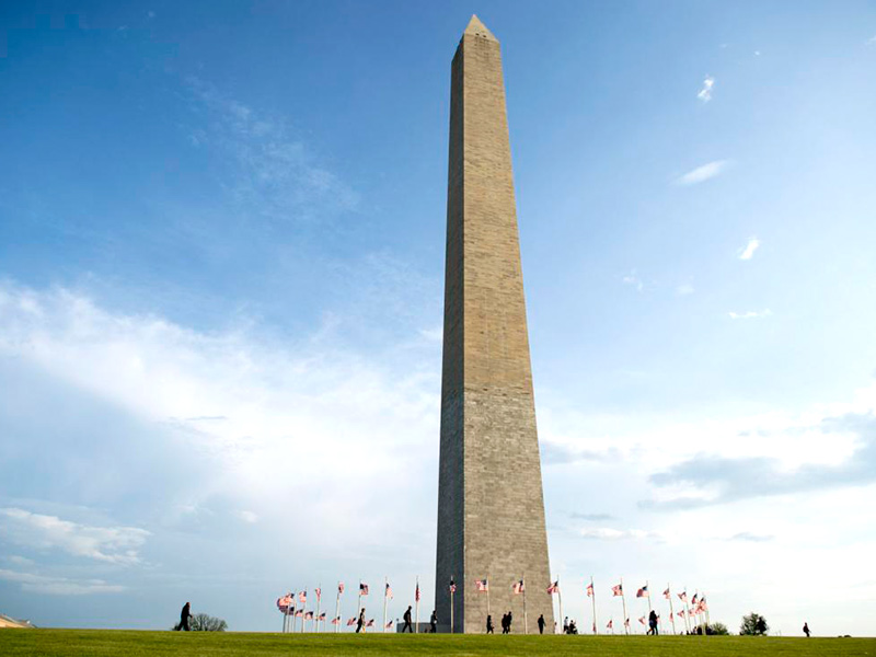 O obelisco foi construído entre 1848 e 1885 como um memorial a George Washington, primeiro presidente dos Estados Unidos. Com 169,7 metros de altura é a construção mais alta da cidade e permaneceu como a mais alta estrutura feita pelo homem até 1889, quando a Torre Eiffel foi inaugurada em Paris, na França.