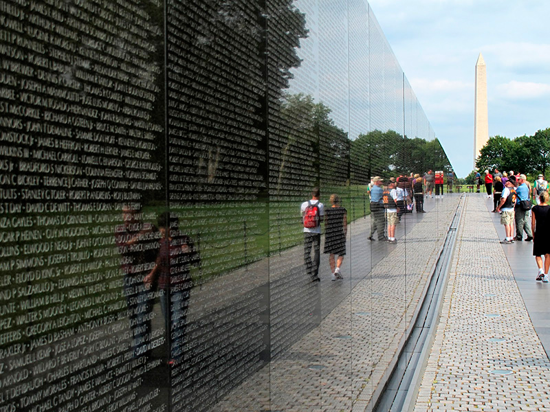 O memorial com os nomes dos soldados americanos mortos na Guerra do Vietnã reflete a imagem dos visitantes / Divulgação