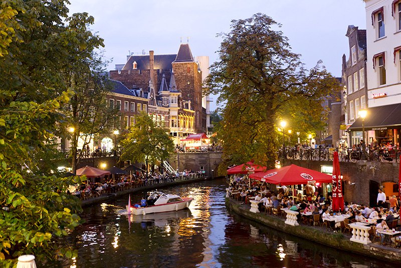 Bares e restaurantes à beira dos canais estão sempre cheios na animada Utrecht