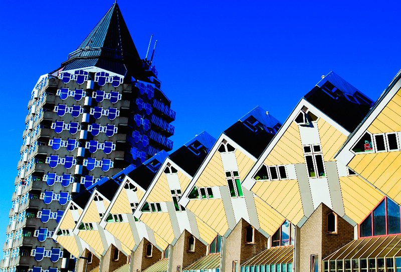 A apenas uma hora de trem de Amsterdam, Rotterdam possui centenas de construções modernas e extremamente criativas que são admiradas e copiadas em todo mundo. Um ótimo exemplo são as surpreendentes casas cúbicas. Excêntricas, as residências foram projetadas pelo arquiteto Piet Blom que teve a intenção de simular um bosque abstrato composto por árvores (as casas) emaranhadas.