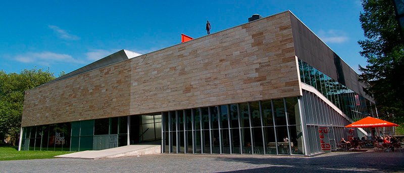 Museu Kunsthal Rotterdam, a “pessoa” lá em cima é apenas uma estátua / Divulgação