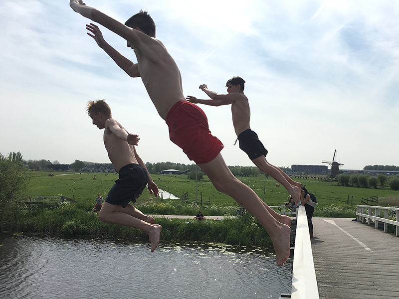 Se há calor, há pessoas nadando nos canais de Kinderdijk / Tuka Pereira