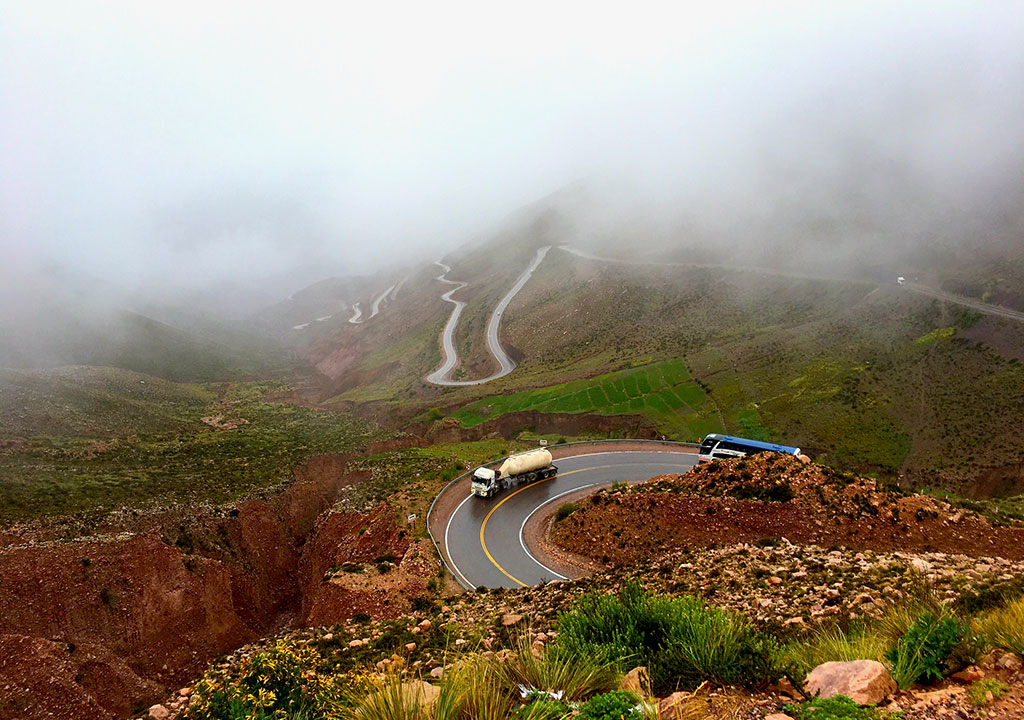 Nas paradas, é possível perceber que a estrada deixou para trás uma ‘serpente’ de curvas de asfalto que mostra o quanto subimos. Sua altura máxima, que fica em Abra de Potrerillos, chega a 4.170 metros acima do nível do mar e não é incomum encontrar neve caindo por lá para alegria dos turistas.