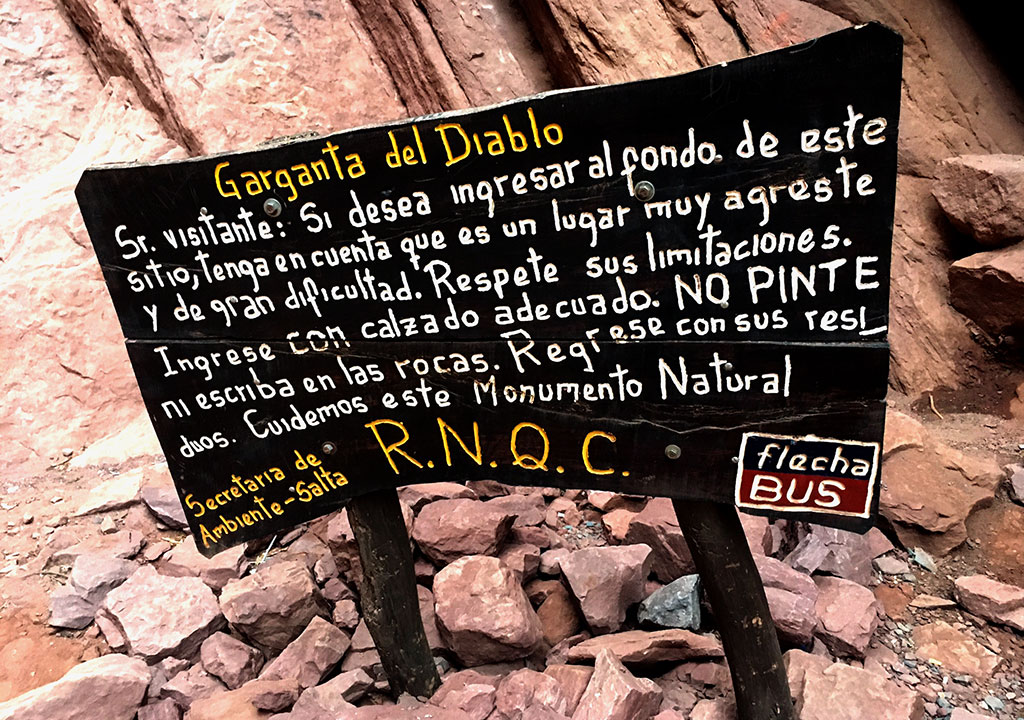 Pelo caminho podem ser vistas rochas avermelhadas, cactos gigantescos e formações rochosas sedimentares formadas há milhões de anos. Algumas delas merecem atenção especial dos turistas. São o caso da Garganta Del Diablo e do Anfiteatro que há milhões de anos abrigavam cascatas de água doce que lhes causaram erosão nas rochas, fato que hoje presenteia os visitantes do local com sua formação especial.