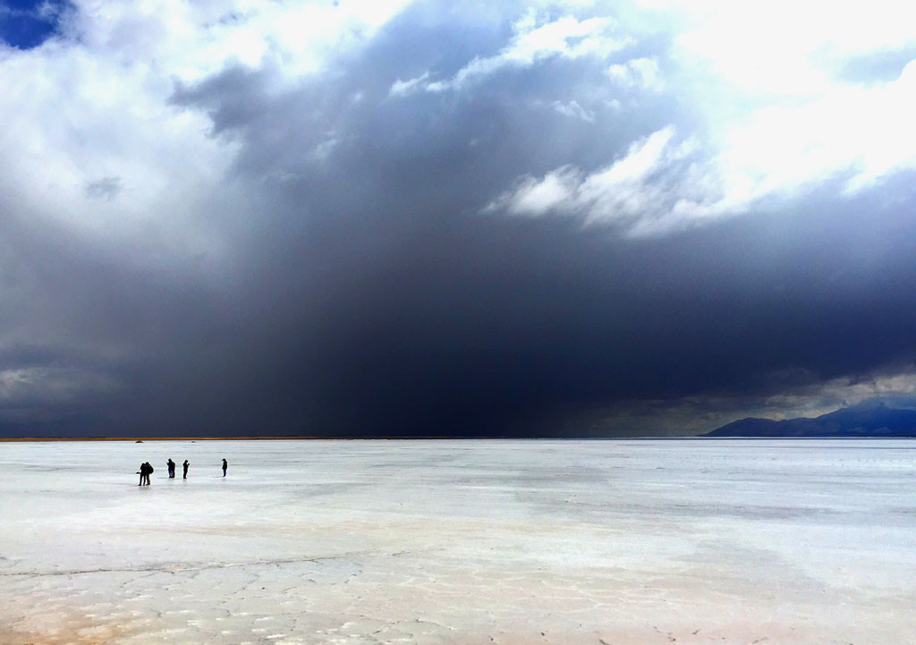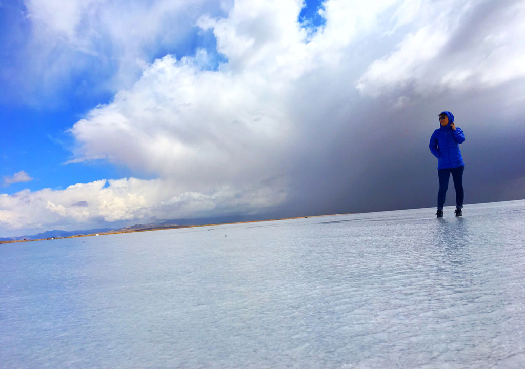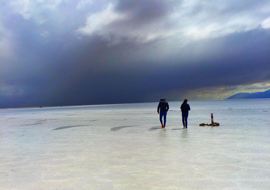 A crosta de sal com cerca de meio metro de espessura é um cenário belíssimo, principalmente quando se dá a sorte de vê-lo após uma noite de chuva. Quando isso acontece, o salar vira um espelho e se junta ao céu formando uma paisagem de beleza espetacular. O único ponto negativo se tiver chovido, é que você inevitavelmente molhará seus pés se estiver usando tênis convencional.