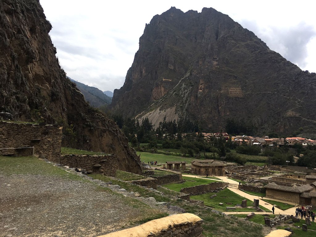 A subida até o topo do centro cerimonial permite vistas panorâmicas do Vale Sagrado, incluindo os rios Patacancha e Urubamba. Aqueles com uma visão apurada poderão inclusive distinguir o rosto de um homem velho formado por rochas da montanha em frente às ruínas.